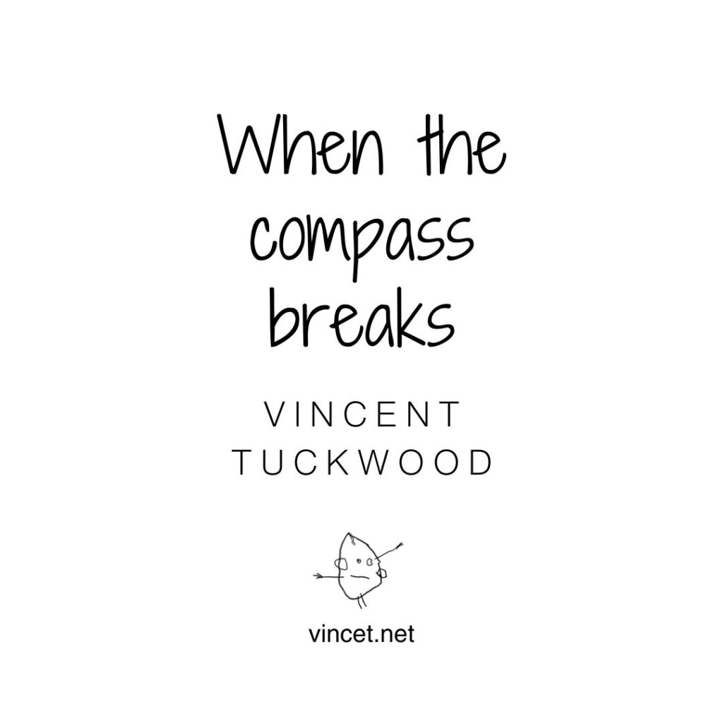 When the compass breaks OddnessPoemsWriting When the compass breaksCracked we look each other in the eyes wondering who draws first now the way…VinceJanuary 6, 2025